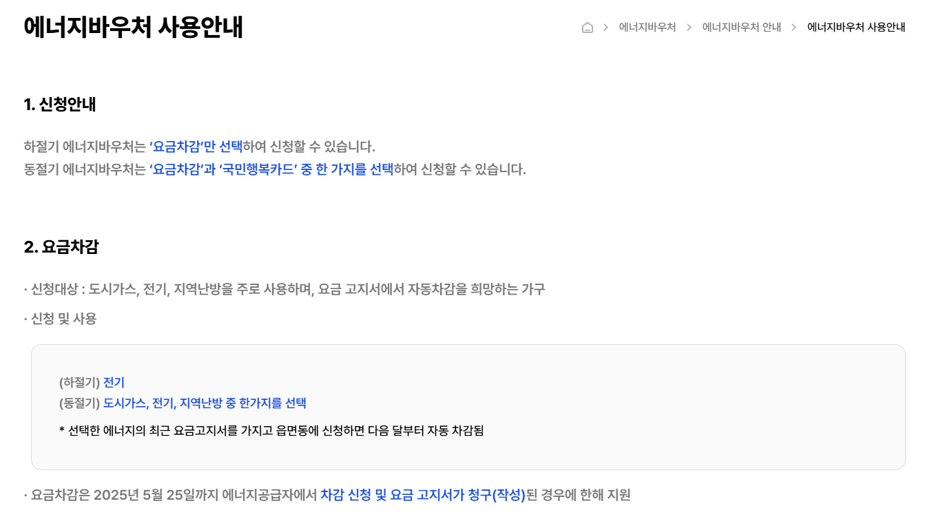 | 2025 에너지 바우처 신청기한 | 2025년 5월~12월 |